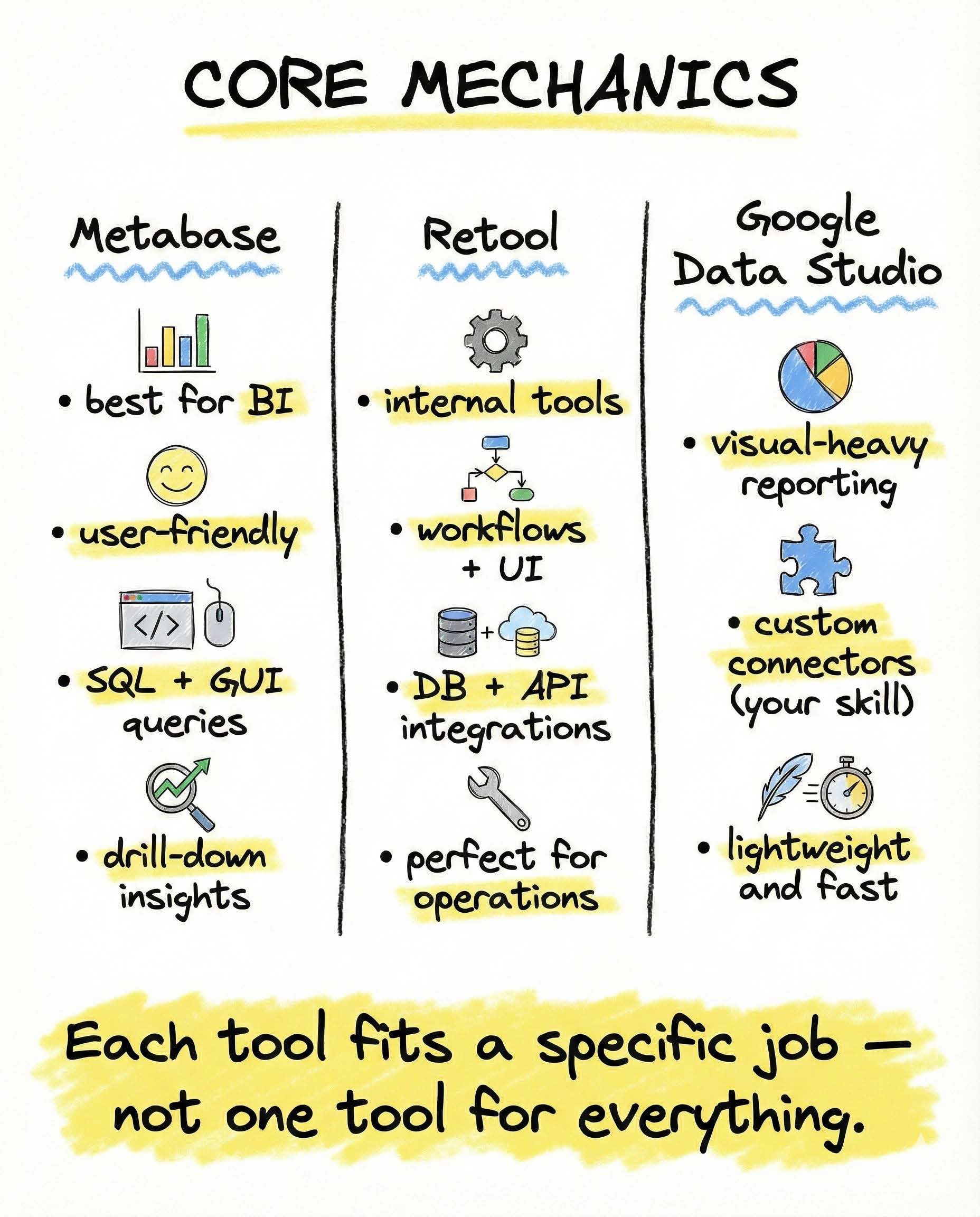 Metabase, Retool, Data Studio: Building Insights Fast
