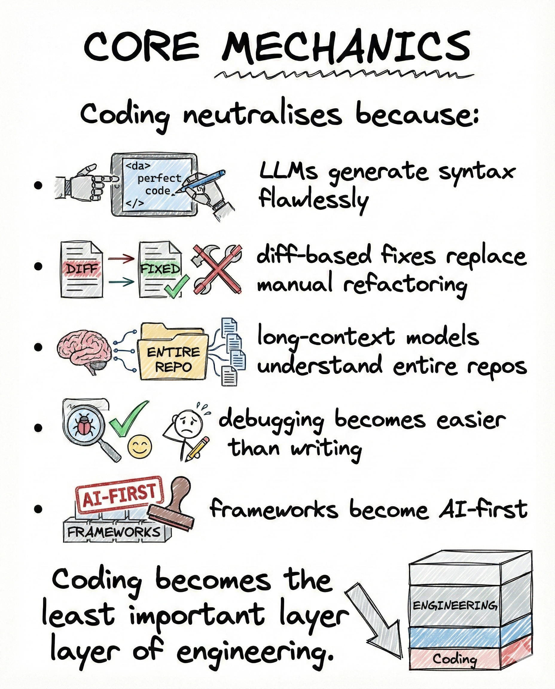 Coding turns into the least important layer of engineering.